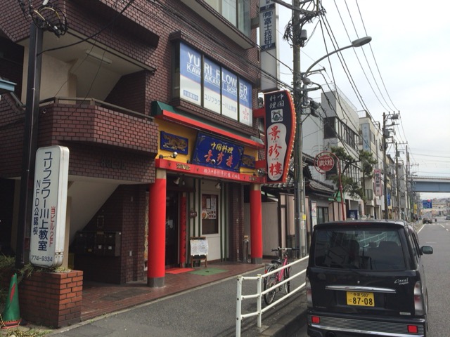 10.16号線沿いに歩道を歩きますと、左手に京珍楼(中華やさん)があります。