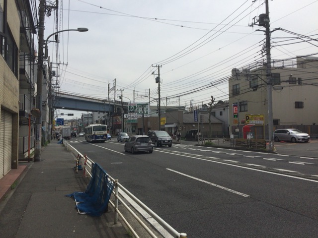 8.すると16号線にぶつかる大きい交差点が出て来ますので、渡らずに16号線沿いに左へ進みます。